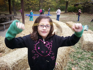 The pioneer toys station was fun! We played Graces, a game where you use two long sticks to launch a hoop to a partner. We also played Stick Pull and a beanbag game (although we know that the pioneers didn't have beanbags). Finally, we made "buzz saws" out of string and a button.